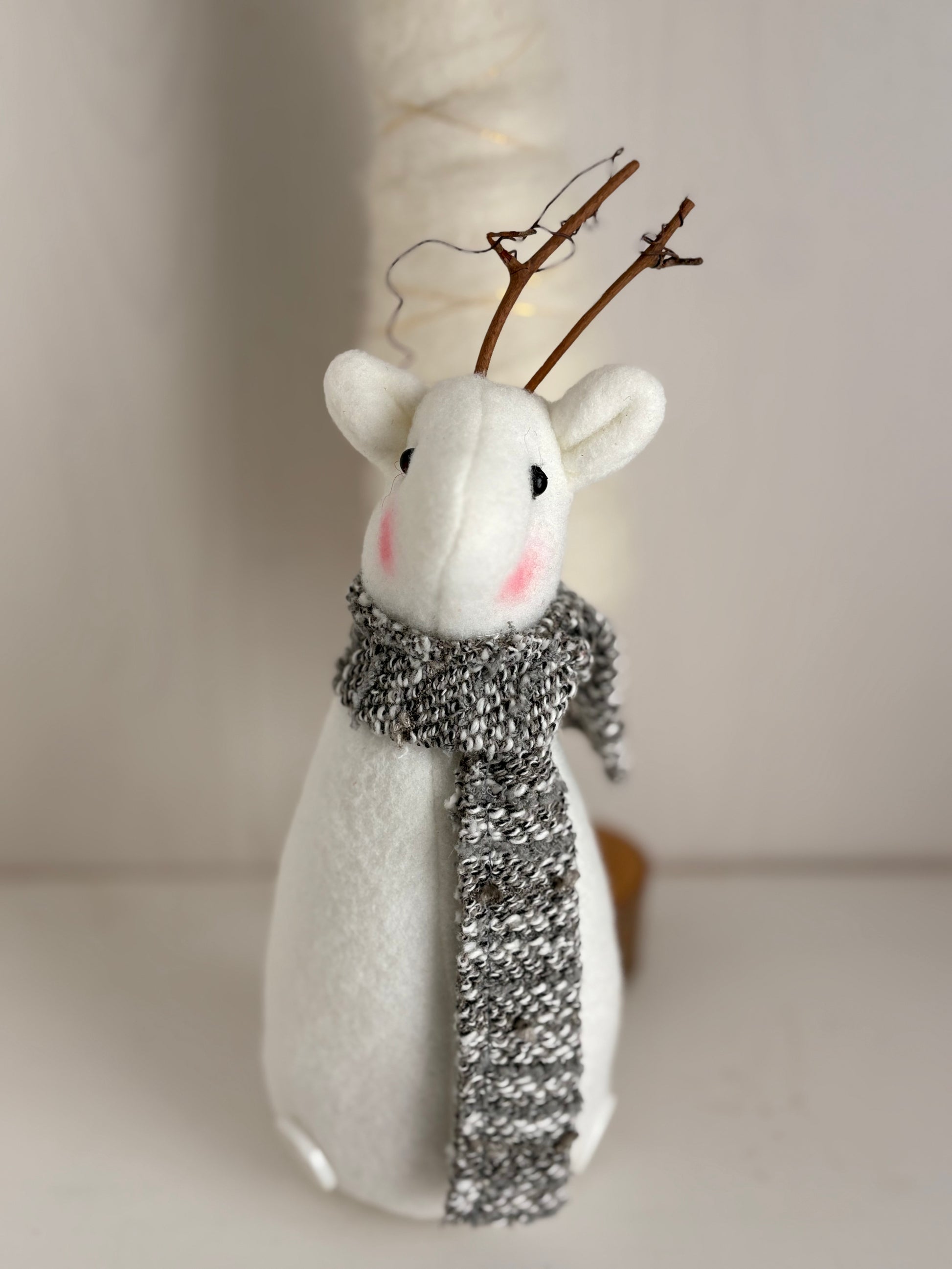 Bring a touch of festive fun to your holiday decor with these adorable polyester-filled reindeer wearing cozy scarves. Perfect for brightening up a country Christmas mantle or adding some cheerful spirit to your workspace. They’re sold separately but look even cuter together. Spread some holiday joy and have yourself a cozy, playful Christmas!
